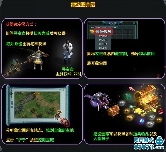 ¡¡¡¡²»ÐèÒªÏñº£µÁÒ»ÑùÔÚ´óº£ÖÐÆ®Ò¡£¬Ö»ÒªÉîÈë²Ø±¦µØ¾Í¿ÉÒÔ²ÎÓëÊ¢ÊÀÈý¹ú²Ø±¦Í¼ÍÚ±¦¡£Íæ¼Ò¼ÓÈë³ÇÊкó£¬ÔÚÖ÷³ÇNPC(Ѱ±¦¹Ù)ʹÓÃ2¸öÀ¶É«×°±¸»ò²Ø±¦Í¼Ë鯬ºÏ³ÉΪ²Ø±¦Í¼¡£Ã¿Ìì×î¶à¿É¶Ò»»3´Î²Ø±¦Í¼¡£Í¬Ê±£¬²Ø±¦Í¼µÄ½±ÀøÒ²¿ÉνÒì³£·áºñ£¬²»µ«¿ÉÒÔ»ñµÃ´óÁ¿µÄ°óÒøºÍ×°±¸½±Àø£¬»¹ÓÐÒ»¶¨¸ÅÂÊÕÙ»½³öѰ±¦´«ËÍÔ±£¬Í¨¹ýѰ±¦´«ËÍÔ±´«ÈëÐùÔ¯Éñµî¡£ºóÐøµÄÃØÃܾ͵ȴýÄãµÄ·¢ÏÖÁË¡£