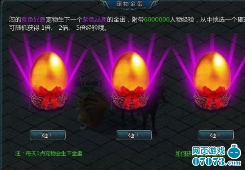 ¡¡¡¡1¡¢40¼¶ÒÔÉÏ´ø³èÎïµÄÍæ¼ÒÿÌì0µã¿ÉÒÔ»ñµÃһö½ðµ°