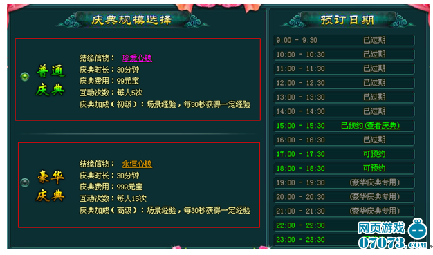 ¡¡¡¡½áÔµÄËÐÞÏÉ´óÊ£¬³É¹¦½áÔµºó£¬¾Í¿ÉÒÔÓÉÄз½¿ªÆôѲÓκÍÔ¤Ô¼Çìµä£¬ÑûÇëÈ«·þÍæ¼Ò²Î¼ÓרÊôÄãÃÇÁ½È˵ĽáÔµÇìµä£¬Ò»Æð»¶ºô°É!!!