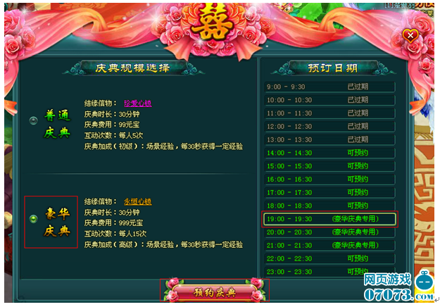 ¡¡¡¡Ñ¡ÔñºÃ×Ô¼ºÐÄÒǵÄÇìµä¹æÄ£ºÍÇìµäÈÕÆÚ£¬¼´¿É½øÐÐÔ¤Ô¼;