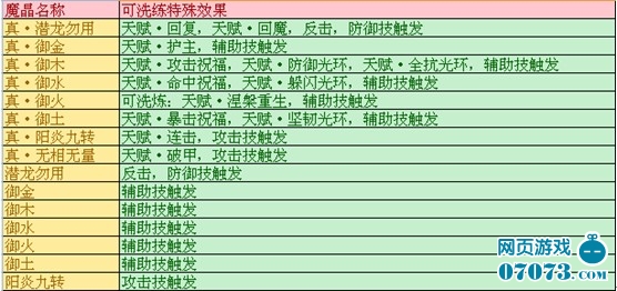 ¡¡¡¡ËµÍêħ¾§µÈ¼¶£¬½ÓÏÂÀ´½²½²Ä§¾§ºÜÖØÒªµÄÒ»¸öÊôÐÔÀ´Ô´°É£¬ÄǾÍÊÇħ¾§Ï´Á·¡£Ä§¾§Ï´Á·¸ÕÒ²½²ÁËÊÇÓëħ¾§µÈ¼¶Ï¢Ï¢Ïà¹ØµÄ£¬Ä§¾§µÄÏ´Á·ÊôÐÔ»á×Ô¶¯Ëæ×Åħ¾§µÈ¼¶µÄÌáÉý¶ø³É³¤£¬Ã¿Ò»Ààħ¾§¶¼¿ÉÄÜÏ´³ö¹¥»÷¡¢·¨ÉË¡¢·ÀÓù¡¢ÆøÑª¡¢·¨Á¦¡¢¿¹ÐÔµÈÊôÐÔ£¬³ý´ËÖ®Íâ×ÏɫƷÖÊÒÔÉÏħ¾§»¹Óлú»áÏ´³öÔö¼Ó³èÎï¼¼ÄÜ´¥·¢¼¸ÂʵÄÊôÐÔ£¬³Èɫħ¾§»¹ÄÜÏ´³öºÜÇ¿º·µÄÌ츳¼¼ÄÜ£¬Ï൱ºÃÓã¬ËÓÃËÖªµÀ¡£ÒÔÏÂÊÇ´Ó¹ÙÍøÕÒµ½µÄ¸÷Ààħ¾§¶ÔÓ¦ÄÜÏ´³öµÄÌØÊâЧ¹û£¬¹©¸÷λ²Î¿¼Ò»Ï¡£