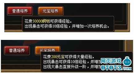 ¡¡¡¡ÅàÑøÒ¶¹«ºÃÁúÓжþÖÖ·½Ê½£¬Ò»ÖÖÊÇʹÓÃÍÇ®½øÐÐÆÕͨÅàÑø£¬ÁíÒ»ÖÖÊÇʹÓÃÔª±¦½øÐÐÔª±¦ÅàÑø¡£Ê¹ÓÃÆÕͨÅàÑø£¬ÐèÒª»¨·ÑÒ»¶¨µÄÍÇ®»ñµÃ½±Àø£¬³öÏÖ±©»÷¿É»ñµÃ10±¶¾Ñ飬²¢Ôö¼ÓÒ»´ÎÅàÑø»ú»á;ʹÓÃÔª±¦ÅàÑø£¬ÐèÒª»¨·ÑÒ»¶¨µÄÔª±¦»ñµÃ´óÁ¿¾Ñé(´ó¸ÅÊÇÆÕͨÅàÑøµÄ3-4±¶×óÓÒ)£¬ÅàÑø¹ý³ÌÖгöÏÖ±©»÷¿É»ñµÃ10±¶¾Ñ飬²¢Ôö¼ÓÒ»´ÎÅàÑø»ú»á£¬³öÏִ󱩻÷Ö±½ÓÉý¼¶Ò»½×£¬²¢Ôö¼ÓÒ»´ÎÅàÑø»ú»á¡£