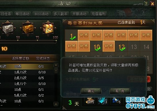 ¡¡¡¡Ç©µ½Ê±Ö»ÄÜÃâ·ÑÇ©µ±ÌìµÄ£¬Èç¹ûÒÔǰǩµ½°´Å¥»¹ÔÚ£¬¶øÓÖûÓÐÇ©µÄ£¬Ö»Äܲ¹Ç©µ½£¬Ö»ÒªÔÚÁ¬ÐøµÇ¼µÄ28ÌìÄÚ²¹Ç©£¬¶¼»¹ÓÐЧ¡£Ö»ÊÇ£¬²¹Ç©ÐèÒª¸¶³öÒ»µã´ú¼Û£¬10Ôª±¦Ò»´Î£¬Ë½ÐÄãÀÁ°¡¡£²»ÒªÏӹ󣬯äʵÕâ¸öÇ®´ó¿É²»±Ø»¨µÄ£¬ÒòΪ¼ÈÈ»ÄãµÇ¼ÁËÓÎÏ·£¬¼òµ¥µØµãÏÂÊó±êÇ©µ½ÊǼþºÜÈÝÒ×µÄÊ¡£Íü¼ÇÇ©µ½£¬ºó¹ûÖ»ÄÜ×Ô¼º¸ºÔðà¶¡£