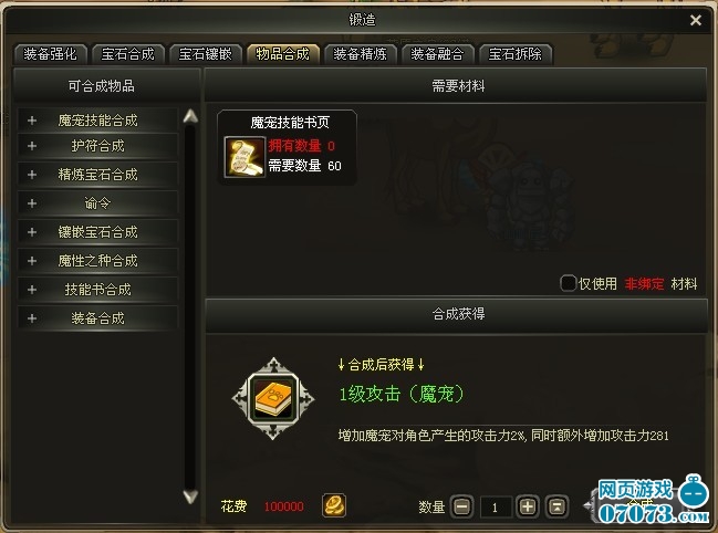 ¡¡¡¡ÈçͼËùʾ£¬¿ÉºÏ³ÉÎïÆ··ÖΪħ³è¼¼Äܺϳɡ¢»¤·ûºÏ³É¡¢¾«Á·±¦Ê¯ºÏ³É¡¢ÚÍÁî¡¢ÏâǶ±¦Ê¯ºÏ³É¡¢Ä§ÐÔÖ®Öֺϳɡ¢¼¼ÄÜÊéºÏ³É¡¢×°±¸ºÏ³É²¿·Ö¡£´ó¼Ò¿ÉÒÔ¸ù¾ÝºóÃæ½éÉܵÄËùÐè²ÄÁϺϳÉÄãËùÐèÒªµÄÎïÆ·¡£