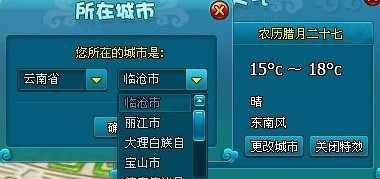 ¡¡¡¡4¡¢ÓÐ×¢Òâµ½Ò»¸ö°´Å¥£¬¹Ø±ÕÌØÐ§£¬ÌìÆøÏµÍ³ÊÇÓëʵʱÌìÆøÍ¬²½µÄ£¬ÄãËùÔڵijÇÊйη磬ÏÂÓ꣬ÓÎÏ·ÖÐÒ²»áËæ×Źη磬ÏÂÓêŶ!´ËʱÄú¿ÉÒÔµã»÷´Ë°´Å¥£¬¹Ø±ÕÓÎÏ·µÄÌìÆøÐ§¹û¡£