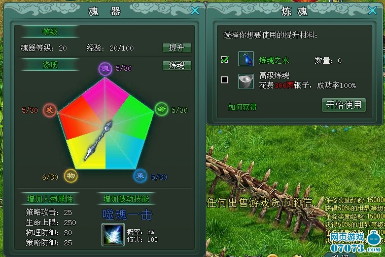 ¡¡¡¡×°±¸»êÆ÷ºó¿ÉÒÔÔö¼ÓÈËÎïµÄ²ßÂÔ¹¥»÷¡¢ÉúÃüÉÏÏÞ¡¢ÎïÀí·ÀÓùºÍ²ßÂÔ·ÀÓùËÄÏîÊôÐÔ£¬²¢ÄÜÓм¸ÂÊ´¥·¢ÐÂÔö±»¶¯¼¼ÄÜ“ÊÉ»êÒ»»÷”£¬ ´¥·¢ºóÔì³ÉÎÞÊÓ·ÀÓùµÄ¶îÍâÉ˺¦¡£»êÆ÷·¢»ÓµÄЧÓÃÓÉ»êÆ÷µÈ¼¶ºÍ»êÆ÷×ÊÖʹ²Í¬¾ö¶¨£¬»êÆ÷µÈ¼¶Í¨¹ý»êÆ÷Éý¼¶Ê¯Ìá¸ß£¬¶ø»êÆ÷×ÊÖÊÔòͨ¹ýÁ¶»ê֮ˮ»ñµÃ£¬Ã¿Ê¹ÓÃһƿÁ¶»ê֮ˮ£¬½«Ëæ»úÔö¼Ó¹¥¡¢Ãü¡¢»ê¡¢²ß¡¢Îïµ±ÖеÄÒ»µã»êÆ÷×ÊÖÊ¡£