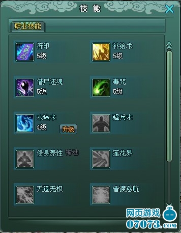 ¡¡¡¡Ë®Í¾Êõ£ºÌØÉ«¼¼ÄÜ£¬¸½´ø8%Äçˮ״̬(²»¿É¹¥»÷£¬²»¿ÉÒÆ¶¯)£¬µÀʿΨһµÄÒ»¸ö״̬¼¼ÄÜ;