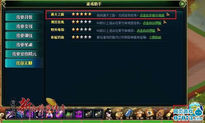 ¡¡¡¡ÒªÉý¼¶£¬Òª±äÇ¿£¬Òª×¬Ç®£¬ÒªÌáÉý³èÎï?ÃÔãµÄʱºòÍæ¼Ò¶¼¿ÉÒÔ´ò¿ª¡¶ÇàÉß֮а×Äï×Ó´«Ææ¡·µÄ±¦µä£¬ÓÎÏ·ÖúÊÖ»áÖ¸ÒýÄúÒ»Ìõ½Ý¾¶¡£µ±ÄãÒªÐÇ»êµÄʱºò¿ÉÒÔȥͨÌì֮·³¢ÊÔÒ»·¬¡£Èç¹ûÍæ¼Ò±íʾ“ÎÒºÜÎÞÁÄ”£¬ÄÇͨÌì֮·ҲºÕÈ»ÔÚÁС£