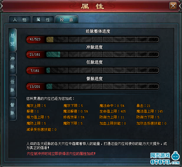 ¡¡¡¡³åÂö£ºÉÏÖÁÓÚÍ·£¬ÏÂÖÁÓÚ×㣬¹á´©È«Éí;³ÉÎªÆøÑªµÄÒª³å£¬Äܵ÷½ÚÊ®¶þ¾ÆøÑª£¬¹Ê³Æ“Ê®¶þ¾ÂöÖ®º£”¡£Íæ¼ÒÈç¹ûÔÚÓÎÏ·Öдòͨ³åÂöµÄѨ룬Ôò¿ÉÒÔÓÐЧÌáÉý×ÔÉíµÄ¸÷Ïî»ù±¾ÊôÐÔ¡£ÆäÊÕÒæÒ²ÊÇ×îΪƽºâµÄ¡£