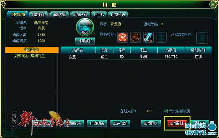 ¡¡¡¡ÓÎÏ·ÖÐÍæ¼ÒÖ»Òª´ïµ½30¼¶£¬±ã»á½Óµ½¼ÓÈëÏÉÃË»òÕß´´½¨ÏÉÃ˵ÄÌáʾ¡£Íæ¼Ò¼ÓÈëÏÉÃË´ú±í×ÅÐÒ¸£µÄµ½À´£¬ÒòΪÏÉÃ˵ĺô¦´ó´óµÎÓС£Ã¿ÈÕÏÉÃËÈÎÎñ£¬Ñ§Ï°ÏÉÃ˼¼ÄÜ£¬¹¥Õ¼À×·åËþ£¬Èç½ñÓÖ¶àÁËÏÉÃ˸±±¾¡£¼¯ÆëÏÉÃËËùÓÐÈ˵ÄÁ¦Á¿¹²Í¬µÖÓùÌìħ¡£Ö»ÒªÄú³öÁ¦£¬¾ÍÄÜ»ñµÃ´óÁ¿¾Ñé¡¢ÐÞΪºÍÏɱҵȽ±Àø¡£