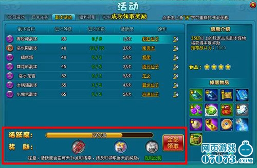 ¡¡¡¡Íæ¼ÒÿÌì½øÐÐÈÕ³£ÈÎÎñ¡¢Ã¿Èջ¡¢¸±±¾»î¶¯¼´¿É»ñµÃ»îÔ¾¶È£¬µ±»îÔ¾¶È´ïµ½Ò»¶¨Öµ¾Í¿ÉÒÔÁìÈ¡»îÔ¾½±Àø£¬¶øÇÒ»îÔ¾¶ÈÔ½¸ß¿ÉÁìÈ¡µÄ»îÔ¾½±ÀøÔ½¶à¡£»îÔ¾¶ÈÿÌì24µãÇåÁ㣬±ðÍüÁËÁìȡӴ!
