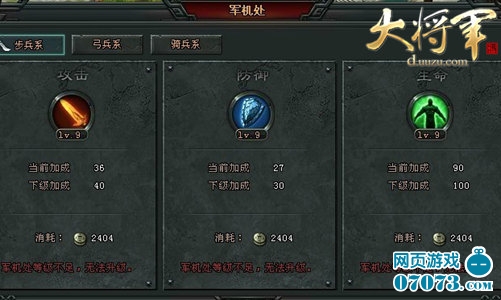 ¡¡¡¡´ó½«¾üÁì±ø×÷Õ½£¬Í³ÁìµÄÊ¿±ø±ØÐëÈÕÒ¹²ÙÁ·£¬²ÅÄÜÎäÒÕ³¬Èº£¬Õ½¶·Áé»î£¬ÉÏÕóɱµÐʱҲ»á±ÈµÐ¾ü¸ü¼ÓÓÂÃÍ¡£ÔÚ¡¶´ó½«¾ü¡·ÖУ¬Íæ¼Ò¿ÉÒÔÔÚÖ÷³ÇµÄ¾ü»ú´¦ÖУ¬Îª¸÷¸ö±øÖÖ½øÐÐÄÜÁ¦Éý¼¶£¬Ä¿Ç°Íæ¼Ò¿ÉÒÔ·Ö±ðÉý¼¶¸÷¸ö±øÖֵĹ¥»÷¡¢·ÀÓùºÍÉúÃüÖµ£¬Éý¼¶ÊôÐÔºóµÄÊ¿±øÉÏÕó¶¨ÄÜÖúÄã´óÏÔÉíÊÖ¡£