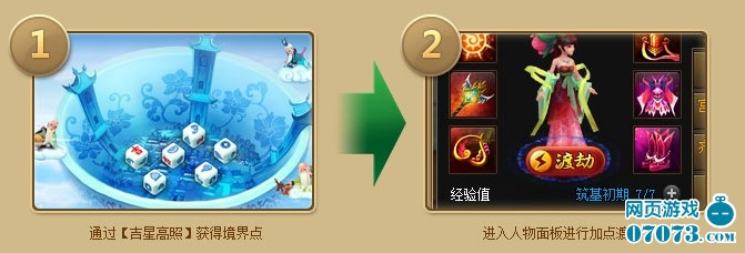 ¡¡¡¡Î÷½ÉñÏɵÀ¡¾¶É½Ù¡¿¾³½ç·ÖΪ£ºÁ¶ÆøÆÚ¡¢Öþ»ùÆÚ¡¢½áµ¤ÆÚ¡¢ÔªÓ¤ÆÚ¡¢»¯ÉñÆÚ¡¢Á¶ÐéÆÚ¡¢ºÏÌåÆÚ¡¢´ó³ËÆÚ¡¢ÏÉÈËÆÚ¡£Ã¿Ò»¸ö¾³½ç¶¼·Ö³õÆÚ¡¢ÖÐÆÚ¡¢ºóÆÚ¡£Íæ¼Ò¿ÉÒÔͨ¹ý¡¾¼ªÐǸßÕÕ¡¿»ñµÃ¾³½çµãÀ´ÌáÉý×ÔÉíµÄ¾³½ç£¬´ïµ½Ò»¶¨¾³½çºó¿É¿ªÊ¼²Î¼Ó¶É½ÙÖ®Õ½¡£ÔڶɽÙÕ½¶·ÖУ¬¶É½ÙÕß¿ÉÑ¡ÔñÒ»¸ö»ï°é»òÖ÷½ÇÒ»Æð²ÎÕ½£¬¶É½Ù³É¹¦¾Í¿ÉÒÔ»ñµÃÒ»¶¨µÄÉúÃüÖµ½±Àø¡£