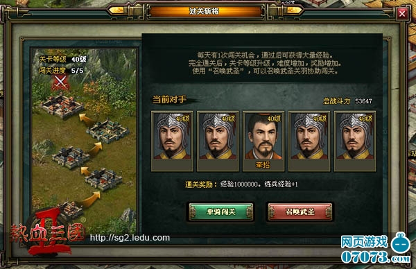 ¡¡¡¡ÔÚ¡¶ÈÈѪÈý¹ú2¡·“¹ý¹ØÕ¶½«”а汾ÖУ¬µ±Íæ¼Ò´ïµ½40¼¶Ê±£¬½«»á×Ô¶¯¿ªÆô“¹ý¹ØÕ¶½«”ÓÎϷϵͳ¡£»î¶¯²ÉÓõ¥Ìôսģʽ£¬ÓÉÍæ¼ÒÅɳö¾ýÖ÷½«½øÐе¥È˶·½«£¬ÌôսʤÀûºó£¬Íæ¼ÒÔÚÏíÊÜʤÀûµÄϲÔõÄͬʱ£¬»¹¿É»ñµÃ´óÁ¿¾Ñé½±Àø¡£¸ü¿ìÉý¼¶£¬¸ü¶àÈÙÒ«£¬ÎÞÏÞ¿ì¸ÐµÈÄãÌåÑé!