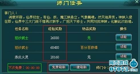 ¡¡¡¡4.ʦÃÅÈÎÎñ£¬ºÍÌìµÀÁîÈÎÎñÒ»ÑùʦÃÅÈÎÎñÒ²·Ö°×¡¢ÂÌ¡¢À¶¡¢×ϺͳÈ5ÖÖÿ¹ýÒ»¶¨Ê±¼ä»ñµÃÒ»´ÎÃâ·Ñˢлú»á£¬Ò²¿ÉÒÔʹÓÃʦÃÅÁîË¢ÐÂÈÎÎñÁÐ±í£¬ÔÚÕâÀïÎÒ½¨Òé¸÷λÏÉÓÑÃÇ×îºÃˢгö×ÏÉ«ÒÔÉϵÄÈÎÎñ²ÅºÃ½ÓʦÃÅÈÎÎñ²»Í¬Æ·ÖÊÖ±½ÓÏà²îµÄ¾ÑéÊǺܶàµÄŶ¡£