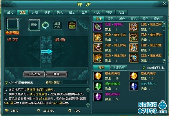 ¡¡¡¡Ê×ÏÈ˵˵37wan¡¶ÉñħÏɽ硷װ±¸Ï´Á¶ÐèҪʹÓõĵÀ¾ß——Ï´Á¶Ê¯ºÍÏ´Á·Ëø¡£Ï´Á¶Ê¯Óɵͼ¶µ½¸ß¼¶·ÖΪÂÌ¡¢À¶¡¢×Ï¡¢³ÈËÄÖÖ£¬À¶É«4Ôª±¦¡¢×ÏÉ«16Ôª±¦¡¢³ÈÉ«20Ôª±¦¡£´ó¼Ò¶¼ÖªµÀ²»Í¬Æ·½×µÄ×°±¸ÐèÒªÓò»Í¬ÑÕÉ«µÄÏ´Á¶Ê¯£¬Èç³È×°ÓóÈɫϴÁ¶Ê¯¡¢×ÏÉ«ÓÃ×ÏɫϴÁ¶Ê¯¡£Ï´Á¶Ê¯Ö÷Ҫͨ¹ýÉ̳ǹºÂò¡¢ÏɽçÉñÓκÍÈÎÎñÔùËÍ»ñµÃ¡£