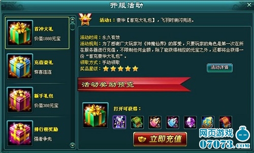 ¡¡¡¡¾ÝÁ˽⣬QQ163¡¶ÉñħÏÉ½ç¡·ÎªÍæ¼ÒÔ¤±¸Á˷dz£·áºñµÄ»ØÀ¡´óÀñºÍ¸÷ÖÖÓŻݻ£¬ÐÂÊÖÍæ¼Ò½øÈë¡¶ÉñħÏɽ硷²»±Øµ£ÐÄûǮûװ±¸£¬´´½¨½ÇÉ«Á¢¿Ì»ñÔù×ܼÛÖµ¸ß´ï5888Ôª±¦µÄ“ÐÂÊÖÉý¼¶´óÀñ°ü”£¬ÖúÍæ¼ÒÇáËÉÉÏÊÖ£¬ÎÞºó¹ËÖ®ÓÇ¡£