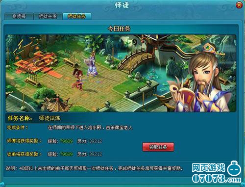 ¡¡¡¡ÁíÍâʦͽÁ½¸ö×é¶Ó»áÓжîÍâµÄ½±Àø¼Ó³É£¬Ê¦¸µÐÖúͽµÜ2ÈË×é¶Ó£¬ÐÖúͽµÜÍê³ÉÈÎÎñ£¬Ê¦Í½¶þÈ˾ùÄÜ»ñµÃ¾Ñé½±Àø¡£Í½µÜ´ïµ½ÁËÒ»¶¨µÄµÈ¼¶£¬Ïòʦ¸µ»ã±¨£¬Ê¦¸µ¿ÉÒÔ»ñµÃÒ»¶¨µÄ½±Àø£¬ÔÙ¾ÍÊdzöʦ½±ÀøÁË£¬³ýÁ˷ḻ³öʦ½±ÀøÖ®Í⣬ʦ¸µ»¹¿ÉÒÔ»ñµÃ¶ÀÒ»ÎÞ¶þµÄʦ¸µ³É¾Í£¬³É¾Í´ïÈËÇÐÇв»¿É´í¹ý¡£