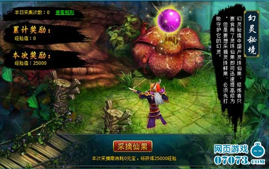¡¡¡¡ÔÚ½çÃæÉϵã»÷²ÉÕªÏɹû£¬½øÈëÓë»ÃÁéµÄÕ½¶·£¬»÷°Ü»ÃÁéÔò²ÉÕªÏɹû³É¹¦¡£(±ØÐëΪµ¥ÈË״̬£¬×é¶Ó״̬ÎÞ·¨²ÉÕªÏɹû)
