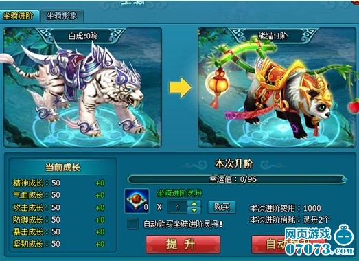 ¡¡¡¡1¡¢×øÆïÎ¹ÑøµÈ¼¶´ïµ½12¼¶ÒÔÉÏʱ£¬¿ÉÓµÓнø½×¹¦ÄÜ¡£