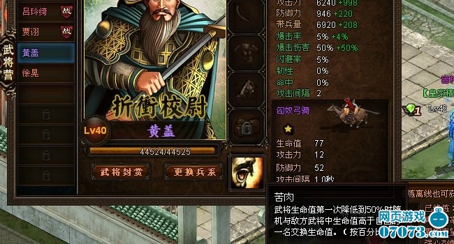¡¡¡¡¼¼ÄܽéÉÜ£º¿àÈâ-----µ±Î佫ѪÁ¿µÚÒ»´Î½µµÍµ½50%Ê±Ëæ»úÓëµÐ·½Î佫ÖÐѪÁ¿¸ßÓÚ×Ô¼ºµÄÒ»ÃûÎ佫½»»»Æ÷ѪÁ¿¡£