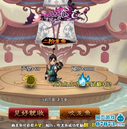 ¡¡¡¡Èç¹ûÄã¾õµÃ»ÁúÓã²»¹»¸øÁ¦£¬»¹¿ÉÒÔ»¨·Ñ50Ôª±¦À´´µÁúÓ㣬³É¹¦Ôò½±Àø»á·3±¶£¬Ê§°ÜÔò¿ÉÒÔ»ñµÃ2±¶µÄ½±Àø¡£