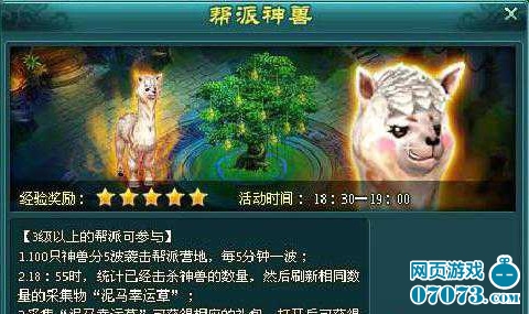 ¡¡¡¡Ï®»÷°ïÅɵÄÉñÊÞÒ»¹²100Ö»£¬·Ö5²¨Ë¢Ð£¬Ã¿5·ÖÖÓË¢ÐÂÒ»²¨¡£ÉñÊ޵Ĺ¥»÷ºÜµÍ£¬µ«·ÀÓùÏ൱¸ß£¬Ã»ÓйýÓ²µÄ¹¥»÷Á¦£¬´òÒ»Ö»¶¼Òª´òÉϰëÌì¡£Ôڻ½áÊøºó£¬ÏµÍ³»á¸ù¾Ý»÷ɱµôµÄÉñÊÞÊýÁ¿£¬Ë¢Ð³ö“ÄáÂíÐÒÔ˲ݔ£¬Ê°È¡¿ÉÒÔ»ñµÃÀñ°ü£¬Óзáºñ½±ÀøÅ¶¡£