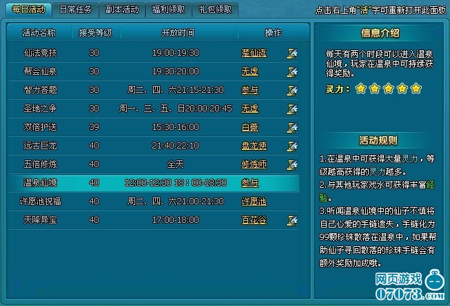 ¡¡¡¡Ò»Ëµµ½ÎÂȪ£¬Ïë±Ø´ó¼Ò¶¼»áÏëÆðÑî¹óåú£º´ºº®´ÍÔ¡»ªÇ峨£¬ÎÂȪˮ»¬Ï´ÄýÖ¬¡£²»¹ý£¬¿ªÐÄ·¡¶Ãλ÷ÉÏÉ¡·µÄÎÂȪÊÇÏɾ³£¬±È»ªÇ峨¸üʤһ³ï¡£ÎÂȪÏɾ³ÊÇÒ»¸öÉñÆæµÄϵͳ£¬ÔÚÎÂȪÖпÉÊ¹Íæ¼Ò»ñµÃ´óÁ¿ÁéÁ¦£¬Çҵȼ¶Ô½¸ß£¬µ¥Î»Ê±¼äÄÚ»ñµÃµÄÁéÁ¦¾ÍÔ½¶à¡£ÈôÅÝÎÂȪµÄ¹ý³ÌÖÐºÍÆäËûÍæ¼Ò½øÐл¥¶¯£¬Ô§ÑìÏ·Ë®»òÒåÎñ°´Ä¦µÈ£¬»¹¿É»ñµÃ¶îÍâµÄ»ñ½±ÄØ¡£