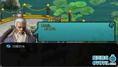 《倚天》中的主城是应天府,同时也是这个世界的中心。城中一片繁华景象,城内荷花池畔便有一个穿越客——姜太公。姜太公乃是商周时期的人物,是辅助周武王灭商的重要功臣。据说当年姜子牙用没有鱼饵的直钩钓鱼而引起了周文王的注意,才得以展现他的才学,如今在《倚天》的世界中,他掌管着每日钓鱼活动。时隔千年,太公依旧独坐钓鱼台。