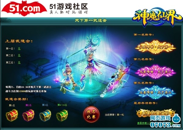 ¡¡¡¡²»ÊǸßÊÖ²»¾ÛÍ·£¬²»ÊÇÄĸöÎÞÃûС×ä¶¼¿ÉÒԲμÓÎäµÀ»áµÄ£¬Î¨ÓÐÕ½¶·Á¦´ïµ½9000(º¬9000) ÒÔÉϵĸßÊֲſɱ¨Ãû²ÎÈü¡£“ÌìϵÚÒ»ÎäµÀ»á”¿ª·Åʱ¼äΪÿÖܶþ£¬ËÄ£¬ÁùÍíÉϵÄ21:00£¬ÔÚÖ÷½çÃæÉϵã»÷»î¶¯Í¼±ê±¨Ãû²¢½ø¼ÆÈë×¼±¸Çø¡£21£º05½øÈëÎäµÀ»á³¡£¬·Ö×éÕ½¶·£¬ÔÚ±ÈÈü³¡µØÄÚ£¬»÷ɱÈÎÒâÍæ¼Ò¿É»ñµÃ»ý·Ö¡£