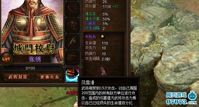 ¡¡¡¡¼¼ÄܽéÉÜ£º·çÑ©Âþ——Î佫ÿÊܵ½15´Î¹¥»÷£¬¶Ô×Ô¼ºÖÜΧ200·¶Î§ÄÚËùÓез½½øÐй¥»÷£¬Ôì³ÉµÄÉ˺¦ÖµÎªÎ佫¹¥»÷Á¦(ÕÅÐå¹¥»÷³É³¤ÎªA)³ËÒÔ×Ô¼ºÒѾËðʧµÄÉúÃü°Ù·Ö±È¡£