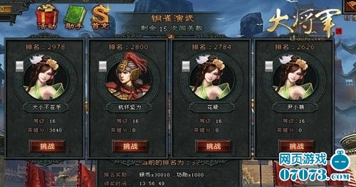 ¡¡¡¡×ö½«¾ü¾ÍÒªÓÂÓÚÕ½¶·£¬¸ÒÓÚÔÚÕ½³¡ÉÏÆ´²«£¬49you¡¶´ó½«¾ü¡·µÄÕ÷Õ½¸±±¾Íæ·¨ÖУ¬Ê×´´ÍȸÑÝÎäÀÞ̨¾º¼¼Íæ·¨£¬ÏëÒªÒ»±È¸ßϵÄÍæ¼Ò¿ÉÒÔÀ´ÕâÀï±ÈÊÔÒ»·¬¡£½øÈëÍȸÑÝÎä½çÃæºó£¬Íæ¼Ò½«Ãæ¶ÔËÄ×éËæ»ú³öÏÖµÄÍæ¼ÒÁÐ±í£¬Äã¿ÉÒÔÑ¡ÔñÆäÖеÄÒ»¸öÀ´½øÐбÈÊÔ¡£