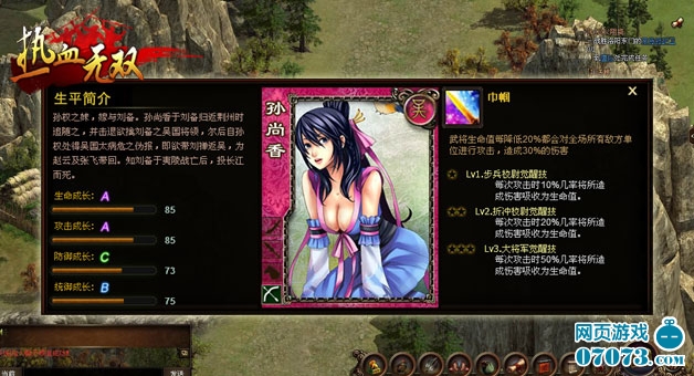 ¡¡¡¡Èç¹û˵Áõ±¸ÊÇÒ»ÊÀèÉÐ۵ϰ£¬ÄÇôËïÉÐÏã¾ÍÊÇÒ»´ú½íàþÁË£¬ÆäÊÌæ¾°ÙÈ˽ԹÂíæµÊ죬Á¬Áõ±¸½øÈëÄÚÊÒ¶¼³¡¸Ðµ½ÐÄÓÐÆÝÆÝ£¬¿É¼ûÆäʵÔÚÊÇÓ¢Æø±ÆÈË£¬²»ÊäÐëü¡£Òò´ËÔÚ¡¶ÈÈѪÎÞË«¡·Ö®Öн«Æä·âÉͼ¼ÄÜÉ趨Ϊ¹¥»÷ºóÓÐÒ»¶¨¸ÅÂÊÎüÊմ˴ι¥»÷Ôì³ÉµÄÉ˺¦£¬ÕâÊÇÒ»¸ö·Ç³£¿Ö²ÀµÄ¼¼ÄÜ£¬ÔÙÓëËïÉÐÏãÔÏȵļ¼Äܽíàþ½øÐÐÅäºÏ£¬¼òÖ±ÊǾÍÊÇÐÂÐ͵ÄÈËÐαøÆ÷°¡¡£