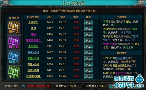 ¡¡¡¡ºÍ¶á±¦»î¶¯ÓÐЩÀàËÆµÄÊǸöÈ˾º¼¼³¡£¬ÓұߵÄÕ½±¨¼òÖ±¾ÍÊdzàÂãÂãµÄ´òÁ³°¡ÓÐľÓУ¬»¹ºÃÒ»°ãÍæ¼ÒÊäÓ®²»»á¹«¸æ¡£²»¹ýÈç¹û¾º¼¼³¡ÄÃÁ˵ÚÒ»Ãû£¬ÄÇÒ²ÊǺܷç¹âµÄ£¬²»½öÔÚÿÈÕ24£º00½áËãʱÊÀ½çͨ¸æ£¬»¹ÄÜÔÚÓ¦Ì츮·ÅÉÏÄãµÄµñËܹ©ÈËĤ°Ý¡£Ö»ÊÇÿ´ÎÌôÕ½Àäȴʱ¼äÔâÈËÚ¸²¡£¬15´ÎÌôÕ½´ÎÊý£¬¹âÀäȴʱ¼ä¾ÍÕ¼ÁË1¸ö¶àСʱ°¡¡£