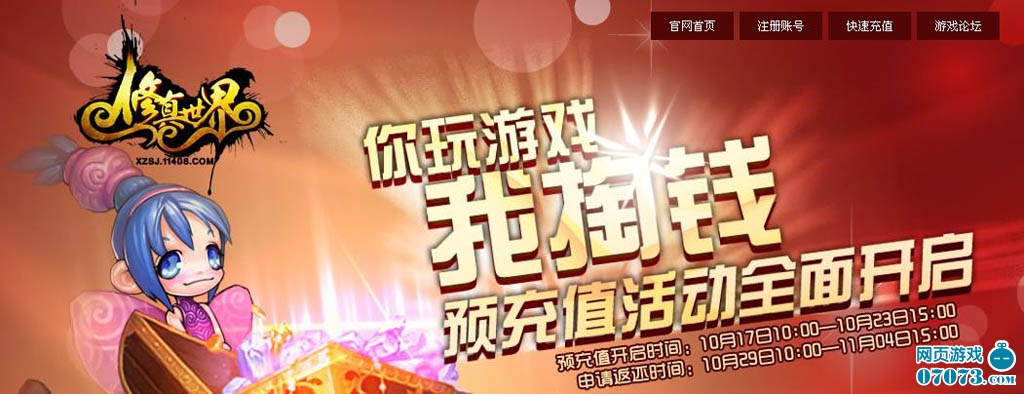 ¡¡¡¡ÔÚÓù½£²âÊÔÆÚ¼ä²ÎÓë“ÄãÍæÓÎÏ·ÎÒÌÍÇ®”Ô¤³äÖµ·µ»¹µÄÍæ¼Ò£¬ÐèÔÚ10ÔÂ29ÈÕ10£º00ÖÁ11ÔÂ4ÈÕ15£º00ÆÚ¼äµÇ¼»î¶¯Ò³Ã棬³É¹¦Ìá½»·µ»¹ÉêÇ룬¼´¿ÉÔÚ¿ª·þºóµÄµÚ8Ìì¡¢µÚ15Ìì¡¢µÚ22Ì죬ÏíÊÜ·Ö3´Î·µ»¹µÄÔª±¦½±Àø¡£Ô¤³äÖµ·µ»¹Ôª±¦½«×Ô¶¯·¢ËÍÖÁÍæ¼ÒÖ¸¶¨µÄ¡¶ÐÞÕæÊÀ½ç¡·Ê×·þ½ÇÉ«ÄÚ£¬Ã¿¸öÔ¤³äÖµÕ˺ÅÖ»¿ÉÌá½»1´Î·µ»¹ÉêÇëŶ!