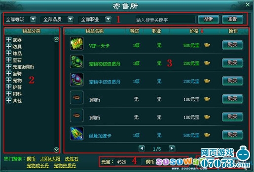 ¡¡¡¡ÇøÓò1£ºÎïÆ·ËÑË÷£¬°´ÕÕÌõ¼þËÑË÷£¬¿ÉÒÔÊäÈë¹Ø¼ü×Ö¡¢µÈ¼¶¡¢Æ·ÖÊ¡¢Ö°ÒµµÈÐÅϢɸѡÊг¡ÎïÆ·¡£ËÑË÷¿ò£º¿ÉÒÔÊäÈëËùËѹؼü×Ö¡£ËÑË÷Ìõ¼þ£º°´µÈ¼¶¡¢°´Æ·ÖÊÑÕÉ«¡¢°´Ö°Òµ½øÐзÖÀà¡£ËÑË÷°´Å¥£ºµã»÷¿ÉÒÔ°´ÕÕÊäÈëµÄÌõ¼þ½øÐÐËÑË÷¡£ÖØÖð´Å¥£º¿ÉÒÔ¶ÔÒѾÊäÈëµÄÌõ¼þ½øÐÐÖØÖá£