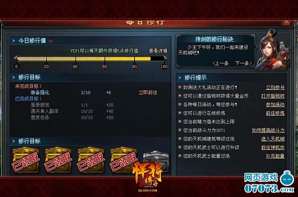 ¡¡¡¡¡¶º·½«´«ÊÀ¡·ÉèÓГÿÈÕÐÞÐДϵͳ£¬Íæ¼ÒÔÚÍê³Éÿ¸öÐÞÐÐÄ¿±êºó¼´¿É»ñµÃÏàÓ¦µÄ½±Àø¡£¶ø“ÿÈÕÐÞÐДÖеÄ×îºóÒ»¸öÐÞÐÐÄ¿±êµÄ½±ÀøÎª“¸ß¼¶¾«Á¦Ò©Ë®”£¬Íæ¼ÒÔÚÍê³É×îºóÒ»¸öÐÞÐÐÄ¿±ê¼´¿ÉÁìÈ¡“¸ß¼¶¾«Á¦Ò©Ë®”µÄ½±Àø¡£Íæ¼ÒʹÓø߼¶¾«Á¦Ò©Ë®ºó¿ÉÖ±½Ó»ñµÃ30µã¾«Á¦Öµ£¬¶ÔÓÚ¾«Á¦ÖµÍêÈ«ÏûºÄµôµÄÍæ¼Ò¶øÑÔ£¬¸ß¼¶¾«Á¦Ò©Ë®¿ÉËãµÃÉÏÊǼ°Ê±Óê¡£