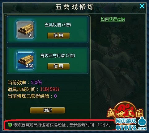 ¡¡¡¡Íæ¼ÒÔÚÈκÎʱ¼ä¶¼¿ÉÒԲμÓÎåÇÝÏ·£¬µ«ÊÇÿÌì12:00ÖÁ12:30²Î¼ÓÎåÇÝÏ·ËùµÃ¾ÑéÊÇ5±¶£¬¶øÇÒÓëÎåÇÝÏ·Æ×Ч¹û¿ÉÒÔµþ¼Ó£¬ÄÇô¹Ò»ú15±¶ÉõÖÁ25±¶¾ÑéÒ²ÊÇ¿ÉÒÔÓеġ£ÖµµÃÒ»ÌáµÄÊÇ£¬Èç¹ûÍæ¼ÒʹÓø߼¶ÎåÇÝÏ·Æ×£¬ÔÚÖÐÎç12:00ÖÁ12:30²Î¼Ó»î¶¯£¬¾Ñé·Ç³£¿É¹Û¡£