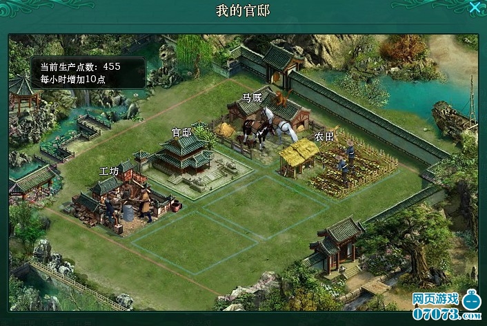 ¡¡¡¡Ïë½øÈë¹ÙÛ¡²¢²»ÄÑ£¬µã»÷ÆÁĻϷ½µÄ“¹ÙÛ¡”£¬¼´¿É´ò¿ª¹ÙÛ¡½çÃæ¡£½øÈë¹ÙÛ¡ºó£¬¿ÉÔÚ¿ÕµØÉÏÑ¡ÔñÐÞ½¨¾ü¹¤·»¡¢Âí¾Ç¡¢Å©³¡µÈ½¨Öþ¡£µ±½¨Öþ½¨ºÃºó£¬µã»÷ijһ½¨Öþ±ã¿É´ò¿ª¸Ã½¨ÖþµÄ²Ù×÷½çÃæ£¬¸ù¾ÝÏÂÃæÄÜÉú²úµÄÎïÆ·£¬Ñ¡Ôñ×Ô¼ºÏ²»¶µÄÈ¥Éú²ú¡£