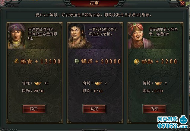 ¡¡¡¡»Æ½ðÂòÒøÁ½£º¸ù¾Ý¹ÙÛ¡µÈ¼¶¾ö¶¨µ¥´Î¿É¹ºÂòµÄÊýÁ¿£¬Ã¿´Î¹ºÂòÏûºÄ»Æ½ðµÝÔö£¬Í¬¹Ù½×µÈ¼¶¹ºÂòÊýÁ¿²»±ä£¬¹Ù½×µÈ¼¶Ô½¸ß£¬¿É»»¹ºÒøÁ½Ô½¶à¡£