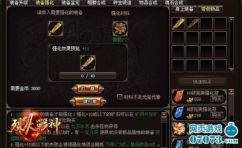¡¡¡¡ÔھɰæµÄÇ¿»¯ÏµÍ³ÖУ¬×°±¸Ö»Äܱ»ÔöÇ¿µ½+10£¬¼«´óµØÏÞÖÆÁ˵À¾ßÊôÐԵĿª·¢ÄÜÁ¦¡£¶ø¾¹ýаæµÄ΢µ÷ºó£¬ÏÖÔÚµ±Íæ¼Ò½«×°±¸Ç¿»¯µ½+10ʱ£¬½«³öÏÖ“´òÄ¥”¹¦ÄÜ£¬¶ø×°±¸Ò²½«»ñµÃ´òÄ¥¶È¡£Ã¿³äÂúÒ»´Î´òÄ¥¶È£¬¸Ã×°±¸½«ÔÙ¶È»ñµÃÒ»´ÎµÄÇ¿»¯»ú»á£¬Ç¿»¯µÈ¼¶²»ÉèÉÏÏÞ£¬¾Í¿´ÄãÓÐûÓÐÕâ¸öÒãÁ¦À´´òÔìÖÕ¼«ÉñÆ÷!