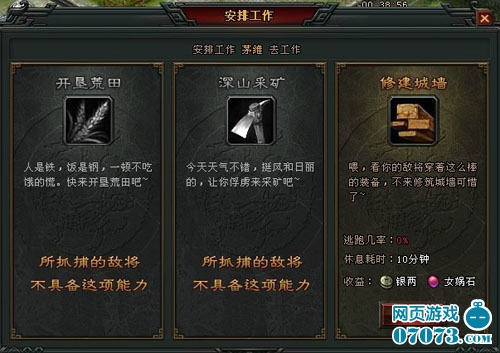 ¡¡¡¡×¥²¶µ½µÐ½«ºó¾Í¿É°²Åʤ×÷£º¿ª¿Ñ»ÄÌï¡¢Éîɽ²É¿ó¡¢ÐÞ½¨³Çǽ£¬×¥²¶µ½µÄµÐ½«¾ß±¸ÏàÓ¦µÄÄÜÁ¦¿É¿ª¹¤¹¤×÷£¬Ëù»ñµÃµÄ½±ÀøÒ²²»¾¡Ïàͬ!