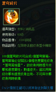 ¡¡¡¡100¸ö²Ôñ·Ë鯬¿ÉºÏ³ÉÒ»¸ö“²Ôñ·±¦Ï䔣¬´ò¿ª“²Ôñ·±¦Ï䔿ɻñµÃË«ÊôÐÔ¼«Æ·³ÈÉ«ÎÆÉ퓲Ôñ··ç¼«À×”£¬¸ÃÎÆÉíͬʱÌáÉý¹¥»÷ºÍËÙ¶ÈÊôÐÔ£¬ÊýֵĿÌ죬³¬³öͬµÈ¼¶¹¥»÷ºÍËÙ¶ÈÎÆÉí²¢Ó㬲»¿ÉÓë¹¥»÷ÎÆÉíͬʱװ±¸¡£