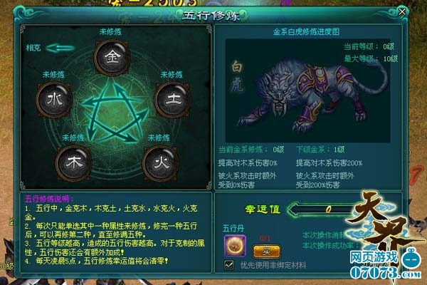 ¡¡¡¡¡¶Ìì½ç¡·ÍƳöÎåÐÐÃØÊõ£¬½«ÌìÏÂÍòÎï·ÖΪ½ð¡¢Ä¾¡¢Ë®¡¢»ð¡¢ÍÁÎå´óÔªËØ£¬±Ë´ËÖ®¼ä´æÔÚÏàÉúÏà¿ËµÄ¹ØÏµ¡£Íæ¼ÒµÈ¼¶´ïµ½50Ö®ºó£¬¾Í¿ÉÒÔ¿ªÆôÎåÐÐÃØÊõ£¬Í¨¹ýÑÐϰÎå´óÔªËØÖ®¼äµÄ¹ØÏµÀ´ÌáÉý×Ô¼º¡£Ã¿Ò»ÖÖÔªËØ¶¼»á½Ì»áÄãÒ»ÖÖÃØÊõ£¬ÍÁ¶Ý¡¢»ðǽ¡¢Ë®Äý¡¢½ðÆø¡¢Ä¾Éú£¬ÔöÇ¿ÄãµÄPKʵÁ¦¡£