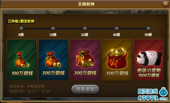 ¡¡¡¡»î¶¯ÄÚÈÝ£º»î¶¯ÆÚ¼äÖÖÖ²µÄ·¢²ÆÊ÷ÊýÁ¿ÀÛ»ýµ½Ò»¶¨ÊýÁ¿Ê±¼´¿É¶îÍâ»ñµÃÍÇ®½±Àø£¬×î¸ß¿É»ñµÃ1000ÍòÍÇ®½±Àø£¬²¢Óлú»á»ñµÃ¾ø°æÐ¡ÐÜèӴ!