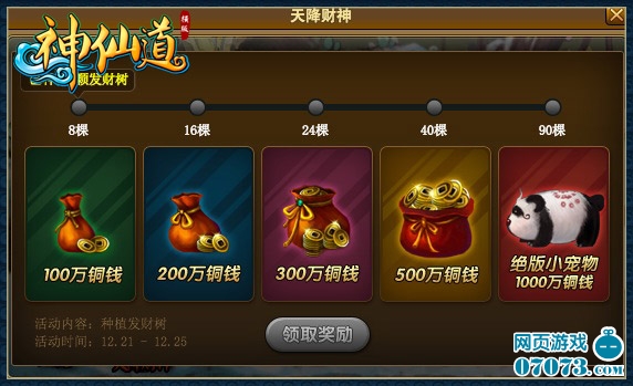 ¡¡¡¡»î¶¯ÄÚÈÝ£º»î¶¯ÆÚ¼äÖÖÖ²µÄ·¢²ÆÊ÷ÊýÁ¿ÀÛ»ýµ½Ò»¶¨ÊýÁ¿Ê±¼´¿É¶îÍâ»ñµÃÍÇ®½±Àø£¬×î¸ß¿É»ñµÃ1000ÍòÍÇ®½±Àø£¬²¢Óлú»á»ñµÃ¾ø°æÐ¡ÐÜèӴ!
