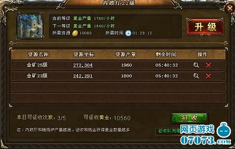 ¡¡¡¡Õ÷ÊÕ½ð¶îµÄ´óСȡ¾öÓÚÄÚÕþÌüµÄµÈ¼¶£¬ËùÒÔÔÚÕâ¸öϵͳÀïÄÚÕþÌüÊǺÜÖØÒªµÄ½¨Öþ£¬²»¶ÏµØÉý¼¶ÄÚÕþÌü£¬ÄãµÄ˰ÀôÃDZã»áÓиü¸ßµÄ¹¤×÷ЧÂÊ£¬Ò²¾ÍÒâζ×ÅÿÌì»áÓиü¶àµÄ½ð±Ò»áÔ´Ô´²»¶ÏµØÁ÷Èëµ½ÄãµÄ¹ú¿âÖÐÀ´¡£