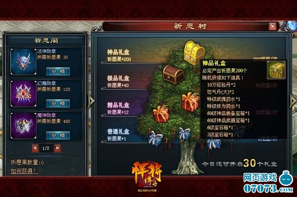 ¡¡¡¡ÆíÔ¸Ê÷ÊÇ¡¶º·½«´«ÊÀ¡·ÎªÊ¥µ®¼Ñ½Ú»ØÀ¡Íæ¼Ò¶øÉÏÏߵĻ£¬Íæ¼ÒÖ»ÐèÒª»¨·ÑÉÙÁ¿µÄÔª±¦¼´¿ÉժȡÆíÔ¸Ê÷ÉϵÄÀñºÐ£¬¿ÉËæ»ú´ÓÀñºÐÖлñÈ¡ÉñÆ·×°±¸¡¢¸ß¼¶±¦Ê¯¡¢¸ß¶î¾Ñé¼°¸÷ÖÖ³¬ÖµµÀ¾ß£¬¸üÓÐ10Íò¾Ñ鵤£¬ÈÃÄãÃëÉý15¼¶;¶¥¼¶Ñ«Õ£¬±©Ôö15000Ѫ;È«ÐÂÉñÎ䣬ÈÃÄãÒ»³¢±ä̬ÊôÐԵij©¿ì!