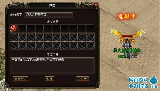 ¡¡¡¡°Ú̯³É¹¦ºó£¬ÏµÍ³Ä¬ÈϵÄ̯λÃû×ÖÊǓijijµÄС̯”£¬ÒªÏëÎüÒýÂòÖ÷ÄÜÔÚÄãµÄ̯λǰͣÁô£¬Ò»¸öÐÑÄ¿µÄÃû×ÖÊDz»¿ÉȱÉٵ쬰Ú̯³É¹¦ºó£¬³ýÁËÁÄÌì¼°ÐÝÏÐÓÎÏ·Í⣬²»ÄܽøÐÐÆäËû²Ù×÷¡£ µ±È»»¹¿ÉÒÔÔÚÊÀ½çÉÏ·¢¹ã¸æ£¬Èøü¶àÍæ¼ÒÖªµÀÄãµÄÎïÆ·¡£