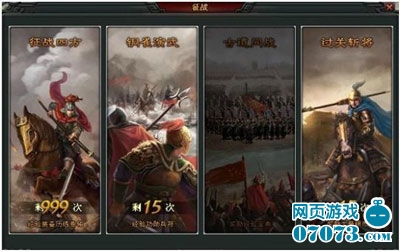 ¡¡¡¡Õ÷Õ½ËÄ·½ÊÇÍæ¼Òµ¥ÈËÍÆÍ¼µÄÖ÷Òª³¡Ëù£¬µã»÷ÓÎÏ·Ö÷½çÃæÓÒÏ·½µÄ“Õ÷Õ½”¼´¿É½øÈ롣ͨ¹ýÌôÕ½Ò»¸ö¸öÊÆÁ¦Ãû½«»ñµÃ¾ÑéÌá¸ß×ÔÉíµÈ¼¶